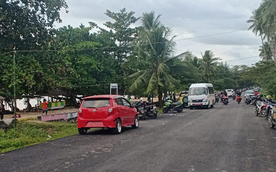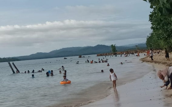 Pulau Morotai — Tidak seperti biasa, Destinasi Wisata Pantai Army Dock yang terletak di Ibu kota Kabupaten Pulau Morotai, Minggu (13/2/2022) sore, mulai dipadati ratusan pengunjung. Kondisi tersebut menjadi berkah bagi para pedagang makanan dan minuman karena pendapatan mereka melonjak drastis.