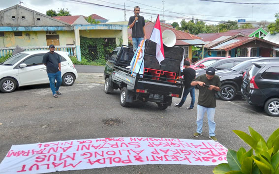Ternate – Sejumlah massa aksi yang mengatas namakan Front Koalisi Pemberantasan Korupsi (FKPK) Provinsi Maluku Utara (Malut), menggelar aksi demonstrasi di depan Kantor Ditreskrimsus Polda Malut dan Kejati Malut, terkait dengan dugaan Tindak Pidana Korupsi (Tipikor), yang diduga dilakukan oleh mantan Bupati Pulau Taliabu, Aliong Mus dan kroninya.
