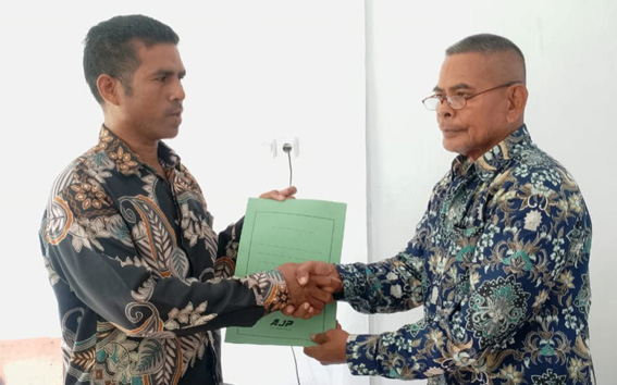 Penyerahan SK dari Sekertaris majelis Dikdasmen dan PNF Provinsi Malut, Drs Karim Merua, kepada Nasarudin Soleman, S.Pd, selaku kepala sekolah SMK Muhammadiyah Tidore.